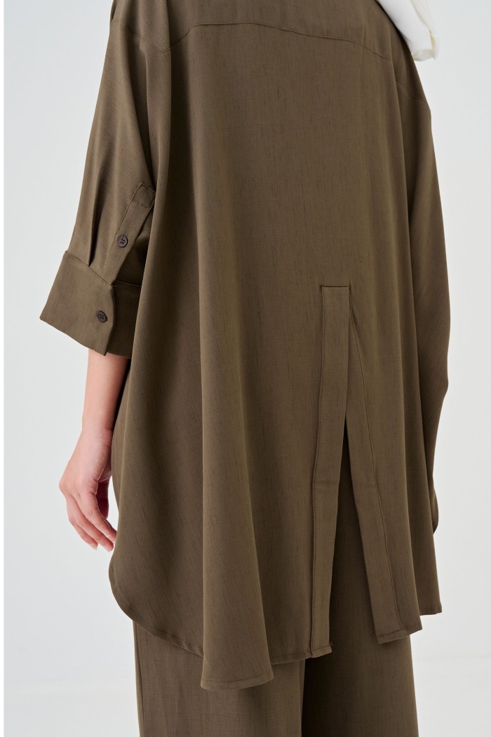 • Two-piece coordinated set combining a relaxed caftan-style top and loose pants