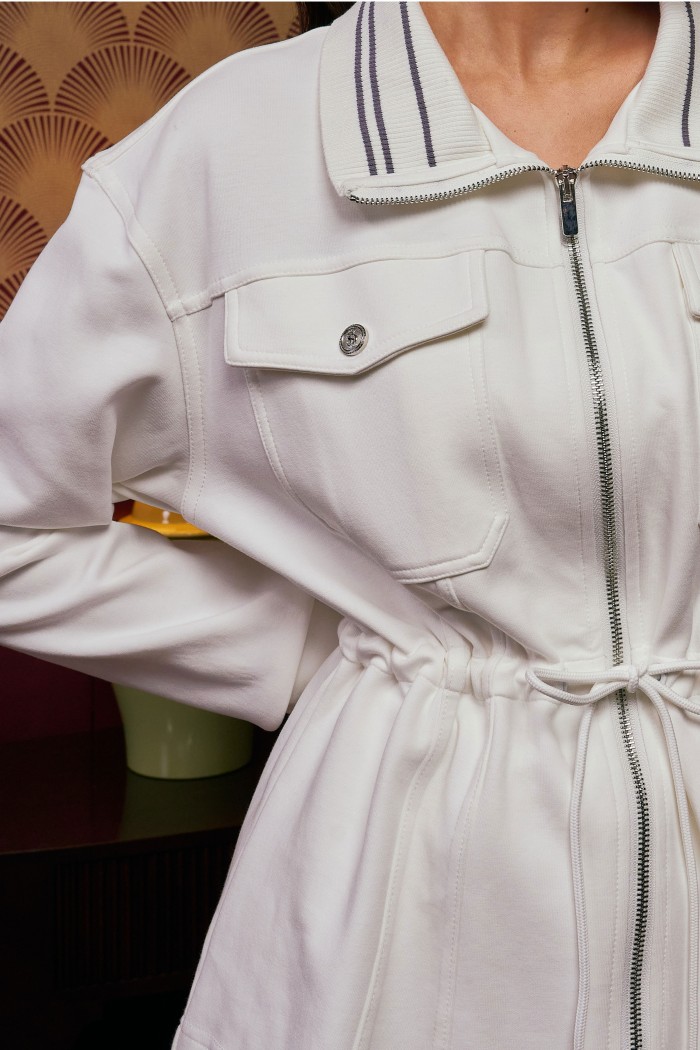 • Jacket with two-way reversible zipperadjustable drawstring waist, and balloon sleeves