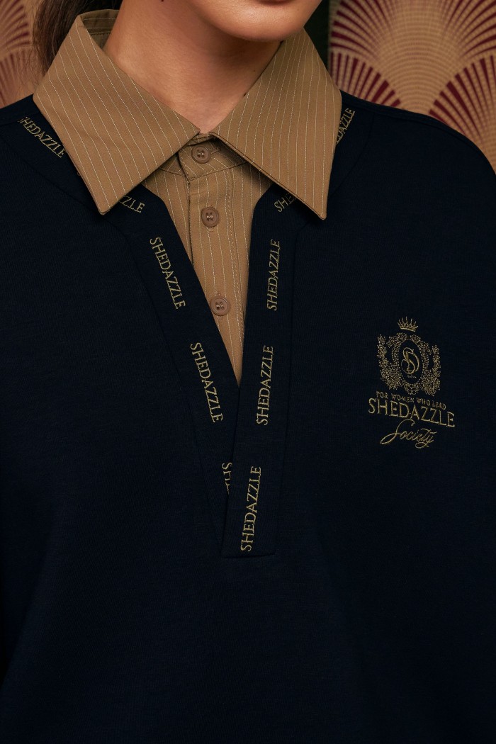 Contrast attached shirt collar with V-placket for a layered, preppy style