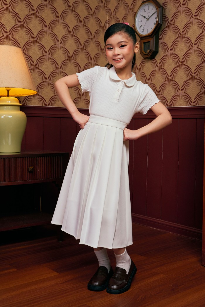 • Tailored ankle-length pleated skirt crafted from cotton drill for structure and comfort